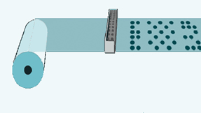 Il film passa attraverso l’unità centrale sulla quale sono posizionati la fotocellula per la lettura delle stampe centrate e gli eventuali accessori opzionali quali ad esempio le teste di saldatura fondo, i ponti di perforazione a freddo, i punzoni a freddo per la maniglia, etc.